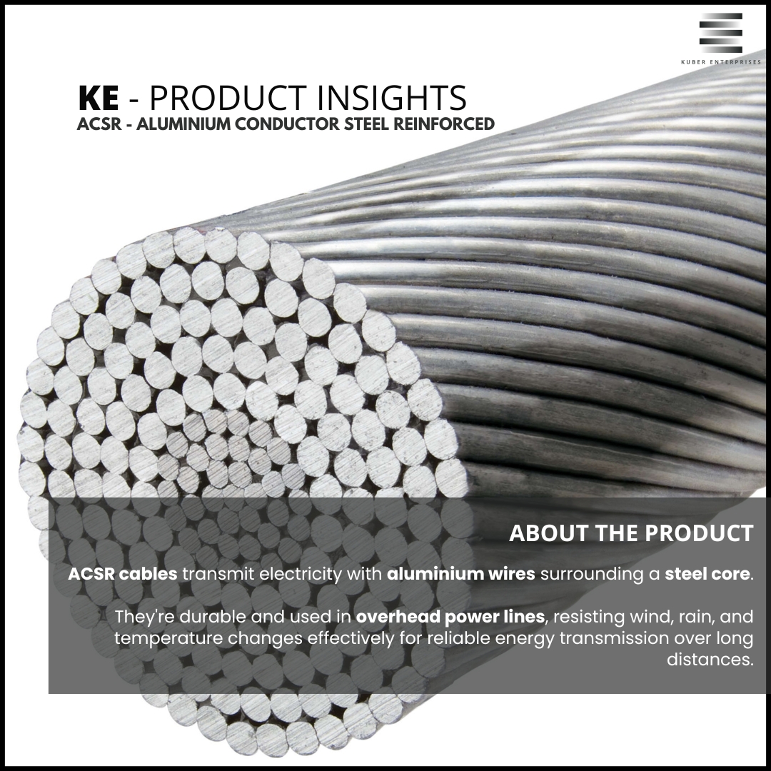 ACSR (Aluminum Conductor Steel Reinforced) Conductors are used in overhead transmission and distribution lines. They offer a combination of strength and conductivity, making them ideal for long-distance power transmission.